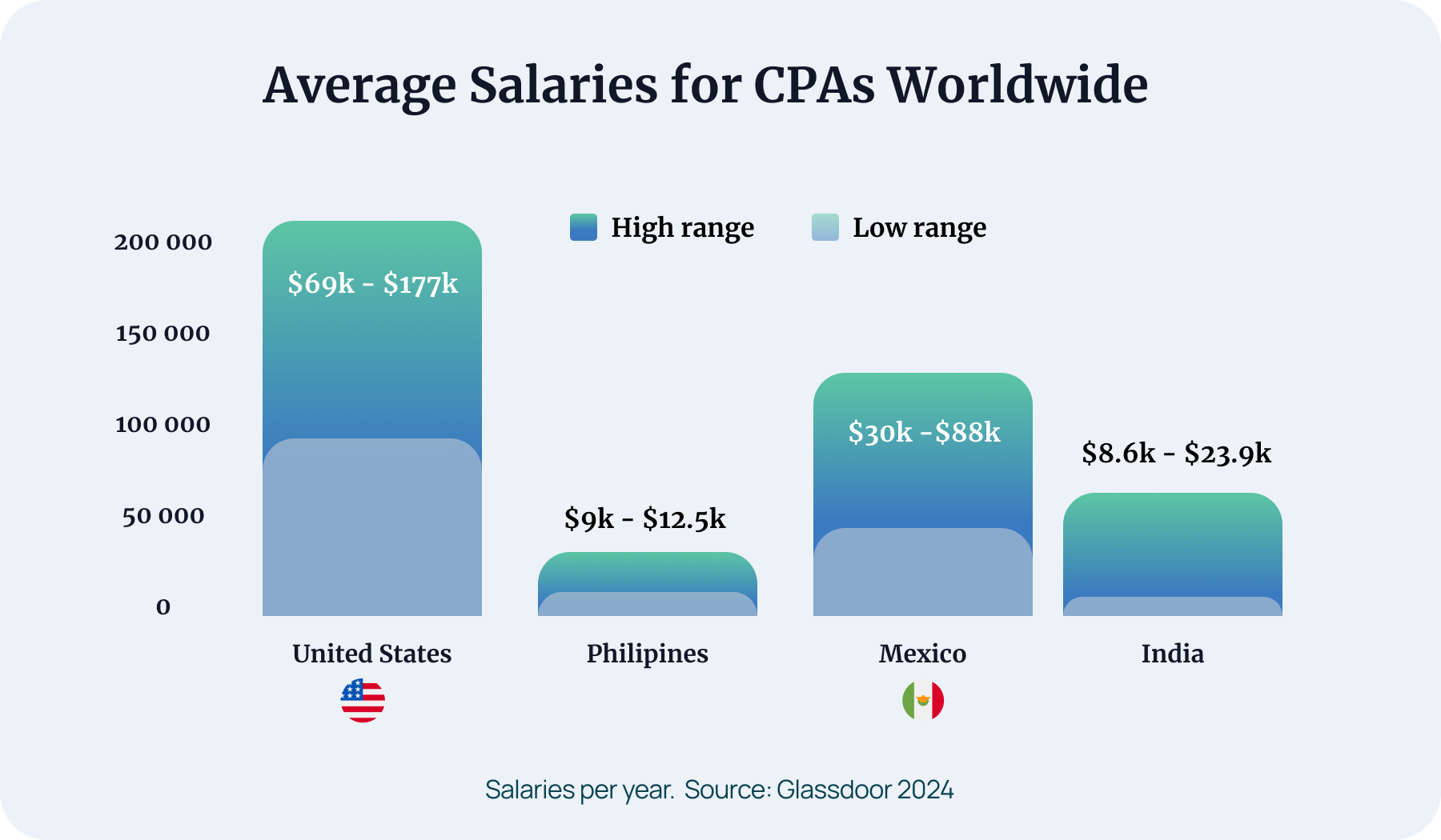 - Wider Talent Availability – While the US faces a shortage of accountants, countries like the Philippines, Mexico, and India have abundant, highly educated accounting professionals.